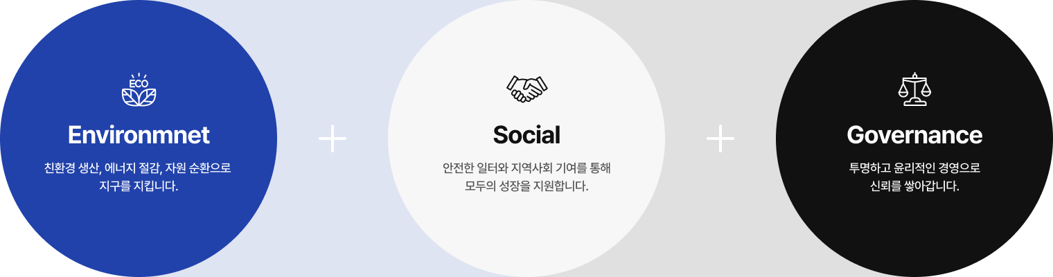 환경 보호, 사회적 가치창출, 투명한 경영을 통해 이해관계자와 함께 성장합니다.